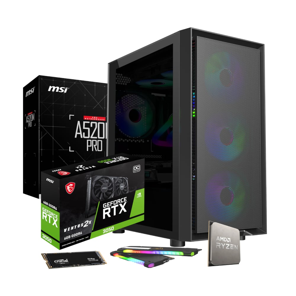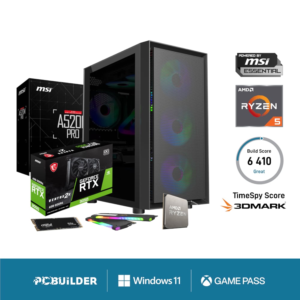 Take your gaming to the next level with the PCBuilder Ryzen 5 5500 SCOUT Windows 11 Gaming PC. Equipped with the powerful 5th generation AMD Ryzen 5 5500 processor, featuring 6 cores and clock speeds up to 4.2GHz, this gaming rig ensures smooth and fast performance for all your gaming and multitasking needs. Combined with the MSI A520 chipset motherboard, 16GB of high-speed Patriot DDR4 gaming memory, and an MSI 6GB RTX 3050 graphics card, this PC is built for high-speed gaming, offering exceptional reliability and efficiency.